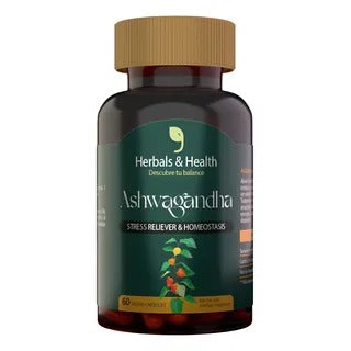 Suplemento alimenticio a base de extracto de Ashwagandha (Withania somnifera), una planta tradicionalmente utilizada en la medicina ayurvédica.